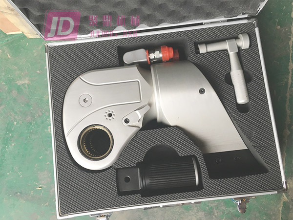 驅動式液壓扳手屬于液壓扭矩扳手中的一種。YD型液壓扳手結構緊湊,體積小,重量輕,輸出扭力大,是螺帽拆卸和螺栓預緊的得力工具。扭力控制在此3%范圍內,能滿足聯接預緊高精度扭力值的要求。單向棘輪棘爪機械防止驅動軸逆轉,確保操作可靠,可調整支承力臂,充分適應不同作業環境,不受空間限制,操作得心應手。 標準四方形驅動軸,配合不同規格套筒,適合多種場合應用。